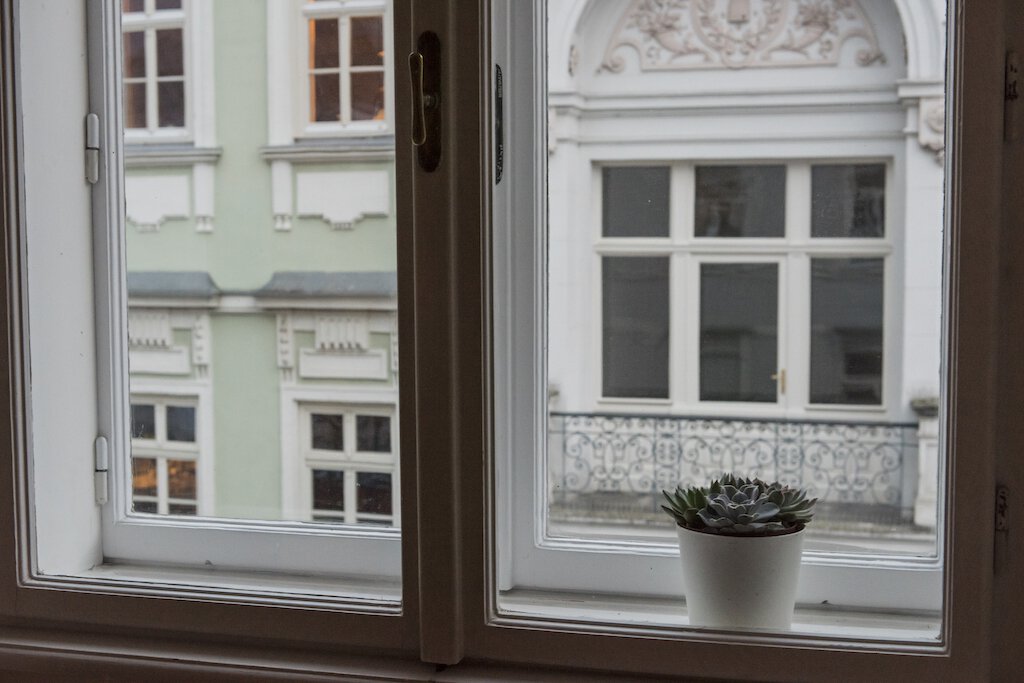 Blick Richtung Herrenplatz und Wienerstraße. Sonnendurchflutet - Rollos vorhanden.